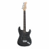 Kytara typu stratocaster, černá, tělo lípa, krk javor, hmatník palisandr, 22 jumbo pražců, šířka nultého pražce 42 mm, menzura 648 mm, snímače H-S-S, 5polohový přepínač, vintage string thru tremolo, včetně kabelu a páky.