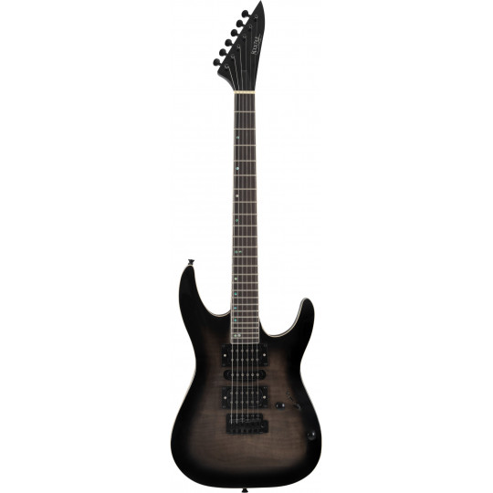 Elektrická kytara typu superstrat v barvě Transparent Gray Burst, tělo okoume, top z žíhaného javoru, krk javor, hmatník jatoba, snímače H-S-S.