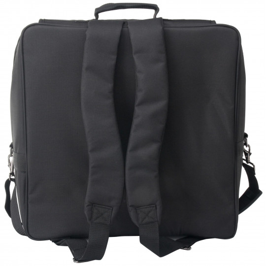 Taška na akordeon výrobce Alpenklang vhodná pro akordeony se 120 basy v černé barvě disponuje velmi příjemnými, měkkými popruhy na záda i velkou odkládací přihrádkou v přední části. Je vyrobena v pevného voděodolného materiálu a má 10 mm silné polstrování. Nechybí 2 úložné kapsy na přední straně. Vnitřní rozměry 52 x 52 x 25 cm.