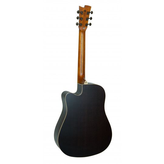 Elekroakustická kytara typu Dreadnought se širším krkem 48 mm, výřezem a přední deskou z AA výběrového masivního smrku Sitka a zadní deskou, luby a krkem z mahagonu. Vše doplňuje značková elektronika Fishman Presys Plus.