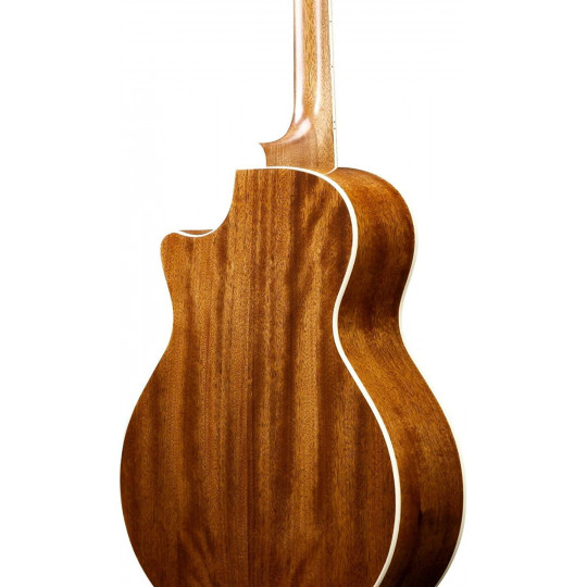 Elektroakustická kytara. Přední deska se sníženým Scalloped X žebrováním je zhotovena z masivního okoumé, zadní deska a luby u okoumé laminovaného. Korpus kytary pokrývá lesklý lak.