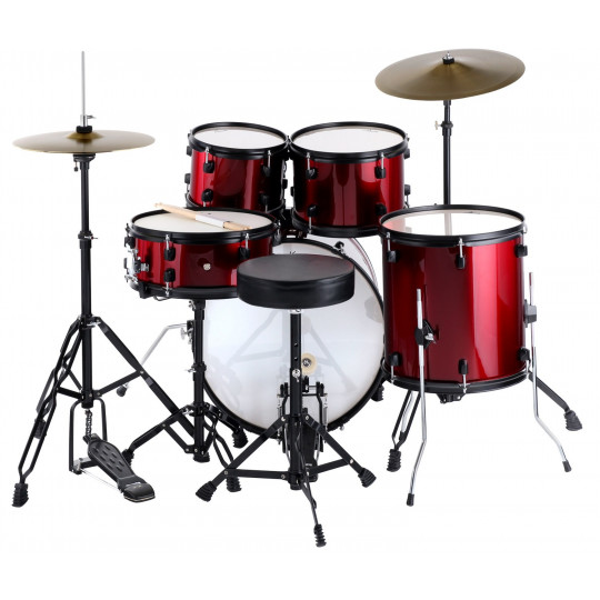 Velikosti 20", 10", 12", 14", 14" Snare - kompletní bicí souprava - studio, ideální pro začátečníky, stylový hardware v černé barvě, včetně paliček 5B, lekce bicích zdarma s DVD.