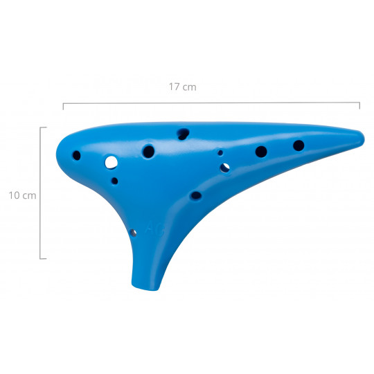 Okarína v poutavé modré barvě vyrobená z robustního plastu v altovém C ladění s tónovým rozsahem c'' - f'''. Nástroj má celkem 12 tónů a velmi jemný a teplý tón.