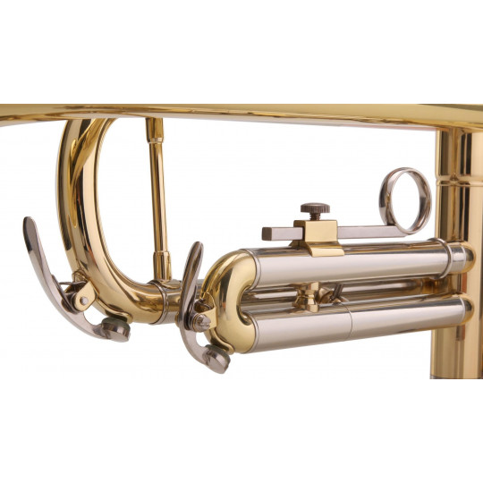 Bb trumpeta se mosazným ozvučníkem, vrtáním 11,8 mm a čirým lakem včetně pouzdra a nátrubku.