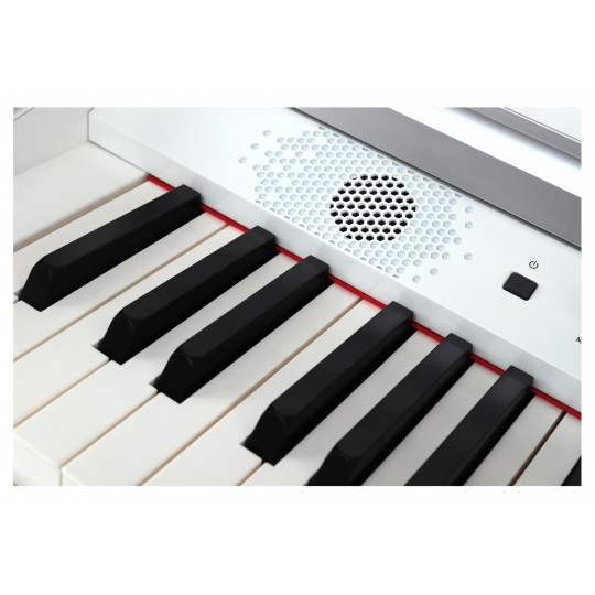 Digitáůní piano v matném bílém provedení s 88 klávesami s kladívkovou mechanikou a dynamikou úhozu. Max polyfonie 256, 1200 zvuků a 38 DSP efektů, nechybí funkce jako streamování Bluetooth®, rozsáhlé doprovodné funkce s 270 styly nebo funkce Dual, Lower a Twinova piano. Zaujme jistě i možnost nahrávání MIDI nebo MP3.