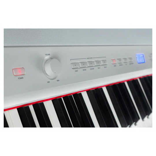 Digitální stage piano v bílé barvě s 88 klávesami s kladívkovou mechanikou. Nástroj disponuje 128 násobnou polyfonií a 14 zvuky, 1 sadou bicích a sadou zvukových efektů reverb, chorus a delay. Nechybí 2-pásmový ekvalizér, 50 klasických melodií nebo 321 cvičení.