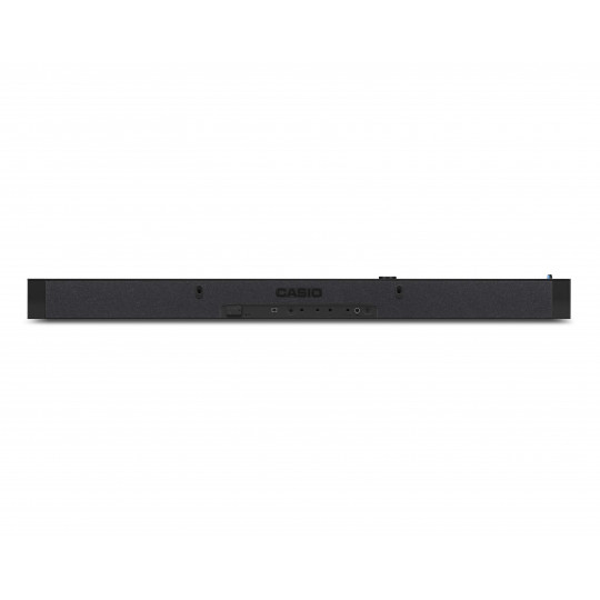 Digitální stage piano se stojanem a pedálem v černém provedení s 88 klávesami, kladívkovou mechanikou a polyfonií 256. K dispozici je 40 zvuků, 50 doprovodů funkce split, metronom nebo bluetooth s USB konektivita. Výkon ozvučení je 2 x 8W + 2 x 8W a poskytuje prostorový zvuk, nechybí sluchátkový i linkový výstup i vstup pro připojení mikrofonu. Jemné ladění lze nastavit v rozsahu A4 = 415.5 Hz ~ 440.0 Hz ~ 465.9 Hz. Orientaci usnadňuje posvícený LCD displej. Casio PX-S7000 umožňuje ohýbání tónů pomocí pitch bend. Pomocí adaptéru WU-BT10 lze do i ze zařízení streamovat audio i midi. Interní MIDI rekordér umožňuje nahrávat 2 stopy, 5 písní, audio rekordér se záznamem na paměťové médium USB umožňuje záznam 99 písní v rozsahu 25 minut na skladbu a v případě interní paměti je to také 99 skladeb s naximální délkou 18 minut na skladbu. Nástroj je možné provozovat i na baterie. Rozměry PX-S6000 jsou 1340 x 242 x 102 mm, hmotnost 14. 8 kg (29 kg včetně dřevěného stojanu a pedálu v černém matném provedení). Součástí balení je samozřejmě síťový zdroj, pedál SP-34 bezdrátový adaptér WU-BT10, dřevěný stojan a protiprachová pokrývka na klaviaturu.