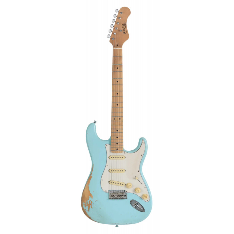 Elektrická kytara typu strat v unikátním modrém Vintage Bright Sky Blue provedení. Korpus nástroje je vyroben z jasanu, hmatník a krk z javoru. Kytara je osazena 3 single coil snímači a ovládání je rozloženo klasicky 1x Volume a 2x Tone společně s 5 polohovým přepínačem. Nataženy jsou struny tvrdosti 0.009. Hardware v provedení Relic Chrome skvěle ladí s celkovým designem kytary. Série Vinstage od Rocktile zahrnuje klasiku v umění konstrukce kytar s mimořádným vzhledem. Výsledkem kombinace vysoce kvalitního dřeva a hardwaru je velmi zajímavý nástroj za bezkonkurenční cenu. V duchu velkých vzorů vytváří použité dřevo v kombinaci se současnou elektronikou neuvěřitelný zvuk. Pokud jde o vzhled - každá kytara je absolutní unikát. I dva nástroje stejného modelu se od sebe vizuálně mírně liší.