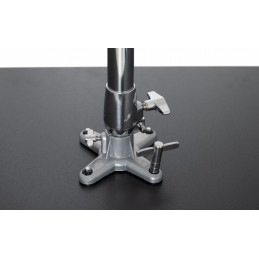 Základna se třemi dvojitými nohami je velmi stabilní i na trávě nebo dlažebních kostkách. Výška se nastavuje jedním křídlovým šroubem, přičemž paměťová svorka pomáhá najít optimální nastavení a navíc stabilizuje trubku stativu. Výšku lze plynule nastavovat, takže stolek využijete jak v poloze v sedě např. u bicí soupravy, tak i ve stoje.