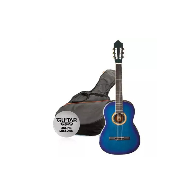 1/4 klasická kytara v modré barvě, korpus vrstvená lípa, krk javor, hmatník a kobylka smartwood, včetně obalu.
