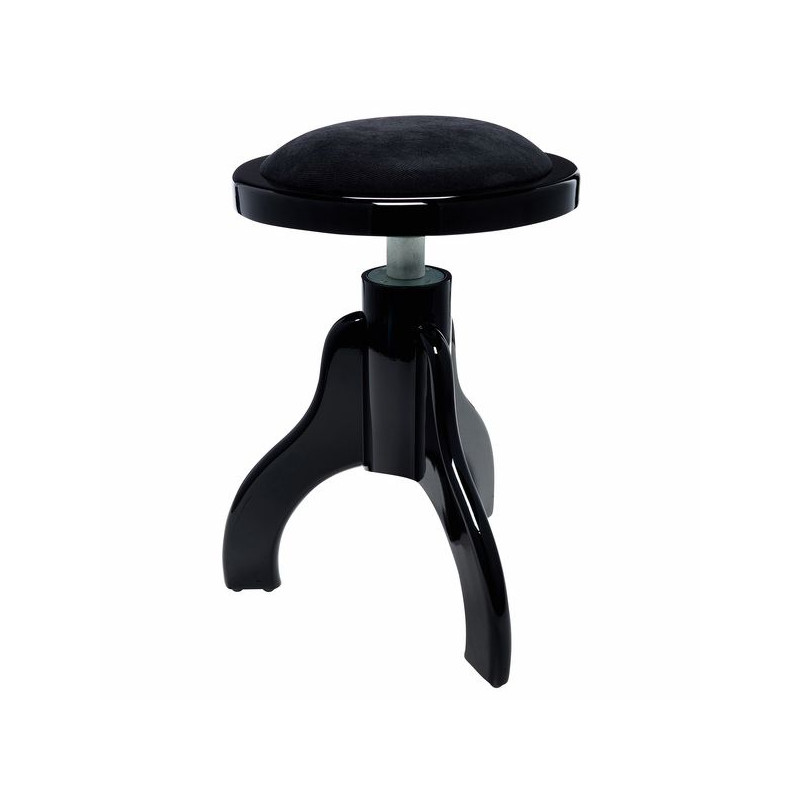 Klavírní stolička s kulatým sedákem a nastavitelnou výškou.