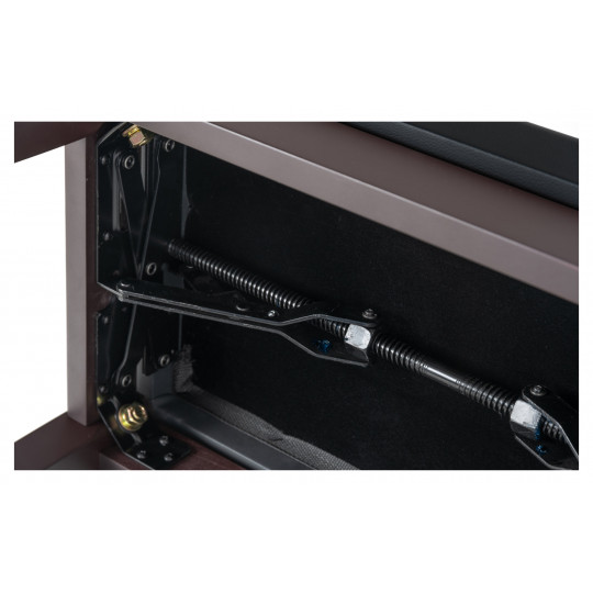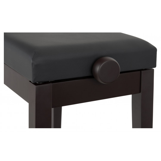 Klavírní stolička s kvalitním sedákem z umělé kůže v matném provedení palisandr s nastavitelnou výškou v rozmezí 48 - 58 cm. Dvojitý křížový mechanismus a pevná dřevěná konstrukce zajišťují maximální stabilitu.