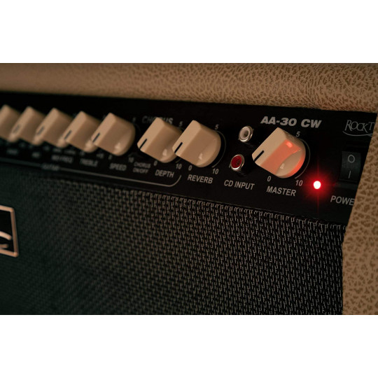 Akustické kytarové kombo se stříbrným předním krytem v krémovém provedení s výkonem 30W, 10 "reproduktorem pro spodní frekvence a 2,5 "výškovým reproduktorem. K dispozici je mikrofonní vstup (XLR/Jack - kombo) pro dynamické mikrofony, Jack 6,35 mm vstup pro kytaru i RCA vstup pro telefon nebo přehrávač.