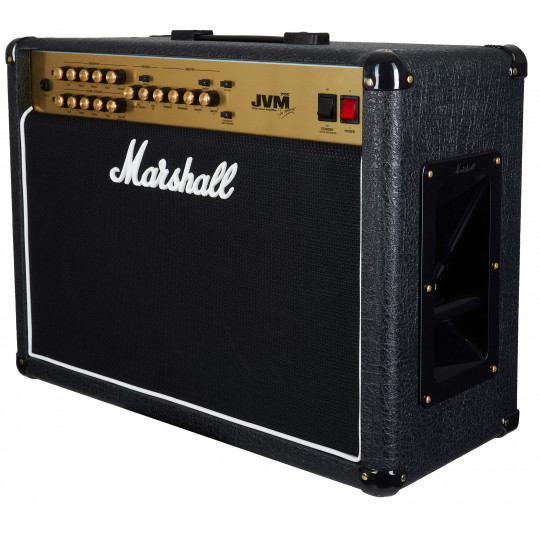 210C patří mezi ty jednodušeji řešené modely z řady JVM. Jde o aparát na celolampovém principu, v předzesilovači naleznete pět ECC83, koncový zesilovač je postaven na 4 elektronkách EL34 a disponuje výkonem až 100W. Aparát je osazen dvojicí reproduktorů Celestion Vintage a Heritage s průměrem 12 palců. Největší síla aparátů JVM spočívá v jejich zvukové variabilitě – nabízí totiž dva kanály, zde označené jako Clean/Crunch a Overdrive, v rámci kterých se ještě skrývají tři zvukové módy. U první kanálu je „zelený“ mód absolutně čistým zvukem s co nejčistší signálovou cestou, z které je dokonce vyjmut Volume pro zachování Vintage charakteru, „oranžový“ mód má stejnou topologii jako legendární Plexi, oproti nim má jen možná o trochu více gainu, „červený“ mód pak vychází z legendárních JCM 800. U druhého kanálu „zelený“ mód znovu vychází z JCM800, v tomto případě ale pořádně nakopnutého, „oranžový“ mód přidává další gain a vytváří tak tón ideální na hard rock či heavy metal a konečně „červený“ mód – to už je opravdu silný hi-gain.