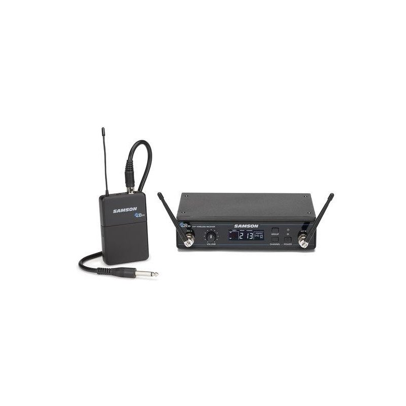 UHF bezdrátový systém pro kytaru s přeladitelnou frekvencí.