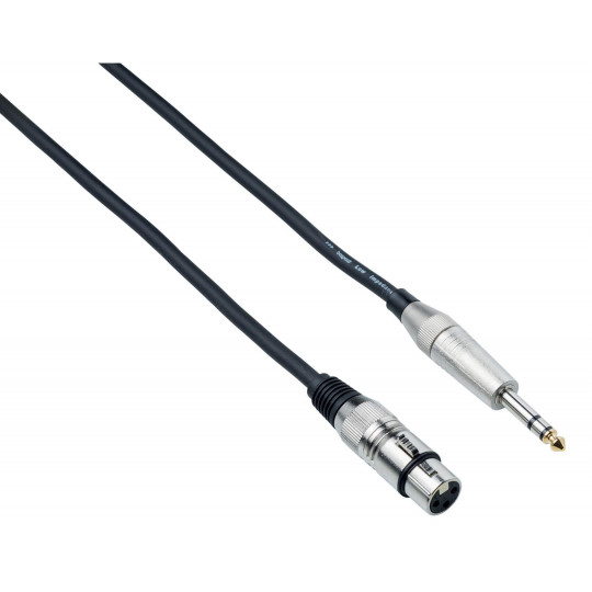 Profesionální mikrofonní kabel s female konektorem a stereo jackem 6,3 mm.
