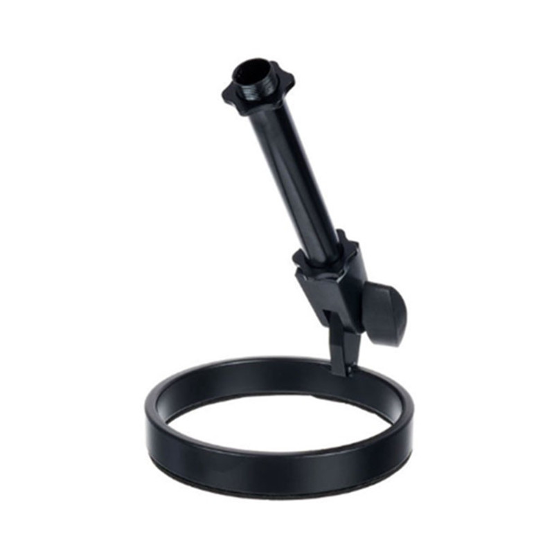 Malý stolní mikrofonní stojan s kruhovou základnou.