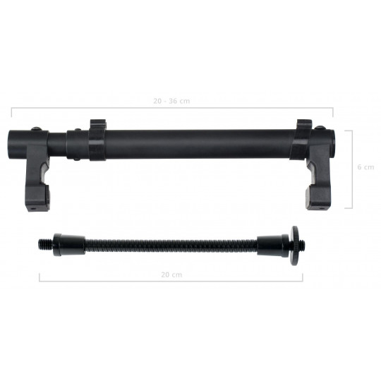 Mikrofonní držák s připevněním na komba a zesilovače, pružný husí krk, silné pružinové pnutí, gumové podložky, rozšiřitelný z 20 cm na 36 cm, hmotnost: 0,6 kg.