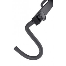 Držák má robustní kovovou konstrukci s práškovým nástřikem v černé barvě.