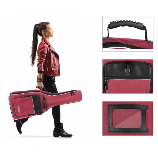 Kvalitní a pevný obal vhodné pro koncertní kytary velikosti 4/4 vyrobený z voděodolného vnějšího materiálu odolného proti roztržení, měkké polstrování s fixací krku nástroje, nechybí polstrované, nastavitelné popruhy nebo velká přední kapsa na noty a příslušenství. Maximální vnitřní rozměry (D x Š): 103 x 40 cm.