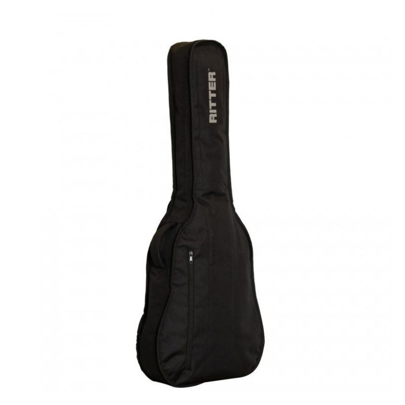 Obal na akustickou kytaru, dreadnought ze série Ritter Flims v černém provedení Sea Ground Black, vyrobený z kvalitního nylonu 420D. Obal má 5 mm polstrování na přední a zadní straně a 10 mm polstr s vysokou hustotou po obvodu, nechybí velká kapsa A4 na noty a příslušenství, polstrované držadlo, 2 nastavitelné polstrované popruhy.