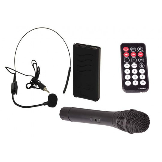 15" přenosný PA systém určený pro mobilní aplikace v terénu s 12V vestavěným akumulátorem. Obsahuje 1x ruční a 1x náhlavní bezdrátový VHF mikrofon s prioritou hlášení a vstupy pro dva kabelové mikrofony 1x LINE vstup a LINE mix výstup. Má vestavěný MP3 přehrávač s USB konektorem, slotem pro SD kartu, LCD displejem, Bluetooth připojením a dálkovým ovládáním. Také má 2-pásmové korekce a echo efekt. Systém má možnost napájení z vestavěného akumulátoru, z externí 12V baterie nebo ze sítě 230V/50Hz. Systém je vhodný např. pro cvičitelky aerobicu, konference, školení a všude tam, kde je potřeba reprodukovat hudbu a řeč. Soustava má vestavěnou výsuvnou rukojeť a kolečka pro snadnější transport.