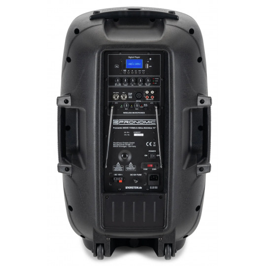 Mobilní ozvučovací set s výkonem 30W (RMS), Bluetooth konektivitou s TWS, vybavený akumulátorem s výdrží až 5 hodin a osazený 15" reproduktorem. Nechybí integrovaný přehrávač mp3 USB, SD. Součástí je i bezdrátový mikrofon, headset a dálkové ovládání.