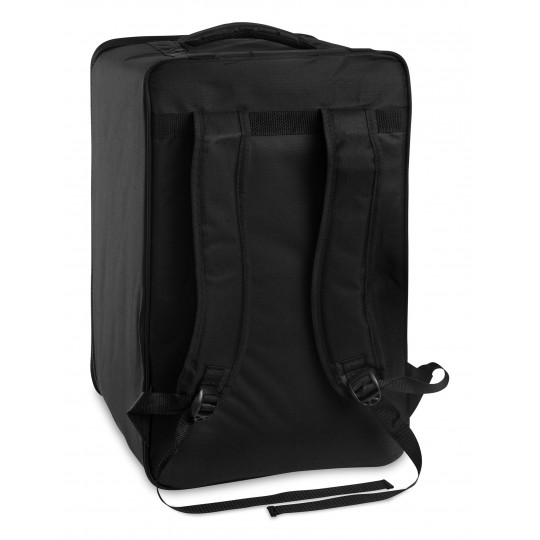 Součástí dodávky je taška vyrobená z odolného nylonového materiálu, která optimálně chrání váš cajon pomocí polstrování o tloušťce 1 cm. Vnější kapsa 33 x 26 cm nabízí dostatek úložného prostoru pro poznámky a další příslušenství. Kromě klasické rukojeti nahoře nabízí tento gigbag i popruh na záda. Takto přenesete svůj cajon na místo určení na kole, skútru nebo pěšky.