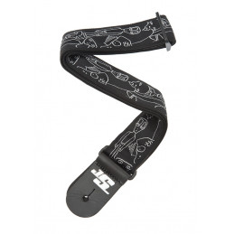 Kytarový / baskytarový řemen "Joe Satriani", vzor Silver Sketches; šířka 5 cm.
