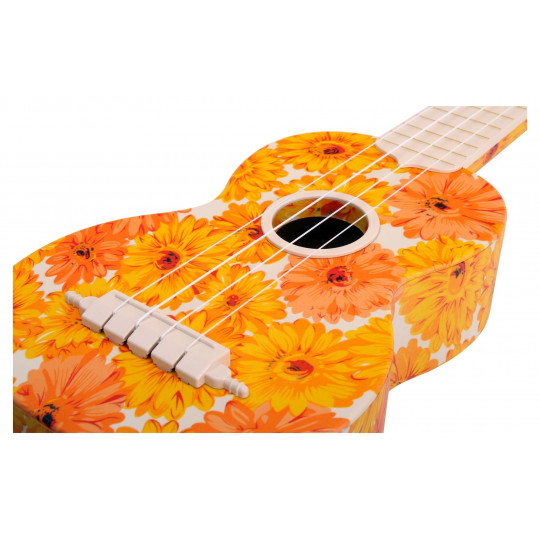 Sopránové ukulele z ABS plastu s nápadným hawajským vzorem. Ideální pro outdoorové aktivity. Odolává kolísání vlhkosti a teploty. 12 pražců dodává se s praktickým nylonovým gigbagem.