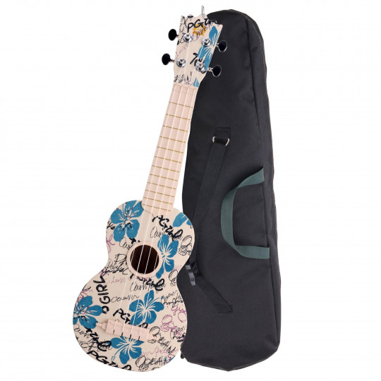 Sopránové ukulele s přední deskou ze smrku a zadní deskou a luby ze sapele vybavené kytarovou mechanikou a nylonovými strunami. Díky kompaktním rozměrům je ideální jako nástroj na cesty.