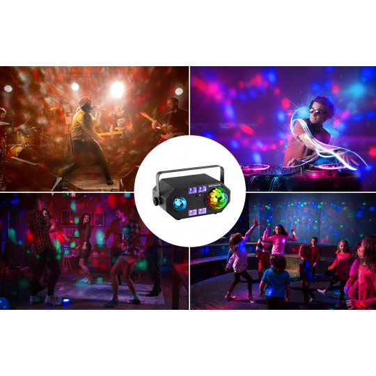 Všestranné RGBWUV LED efektové světlo s dálkovým ovládáním, funkcí stroboskopu, UV, magické koule a vodopádu. 5 barevných LED s celkovým světelným výkonem až 30 wattů. Snadná manipulace - automatický režim a režim řízený hudbou, uzamykatelný kovový montážní držák pro montáž na stěnu a strop. Součástí dodávky je i IR dálkové ovládání pro rychlou změnu barev a efektů. Optimální základní vybavení pro party, bary a konání nejrůznějších zábavných akcí.