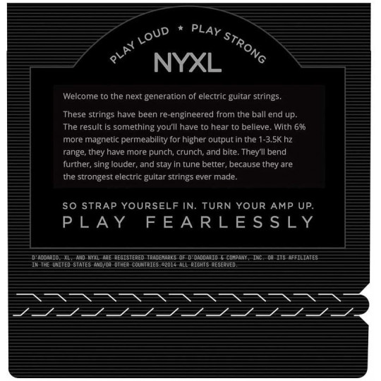 Sada strun pro elektrickou kytaru, série NYXL, struny jsou zpevněny díky speciálnímu ocelovému jádru a vhodné pro velmi tvrdé hraní a vysoké vytahování not, díky těmto materiálům si struny zachovávají nejen pevnost, ale také o 131% lepší stabilitu ladění. Tloušťka: 10-52.