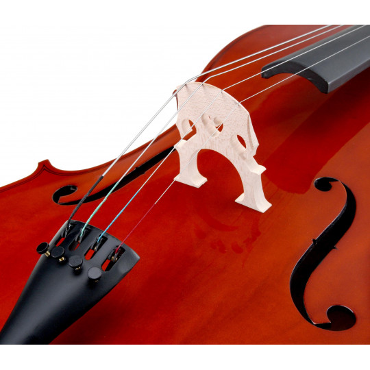Violoncellový set velikosti 4/4, smrkový top, korpus, luby, krk a kobylka jsou vyrobeny z javoru, hmatník z mořeného lipového dřeva, kolíky z hardwood. Součástí tohoto setu je smyčec a obal.