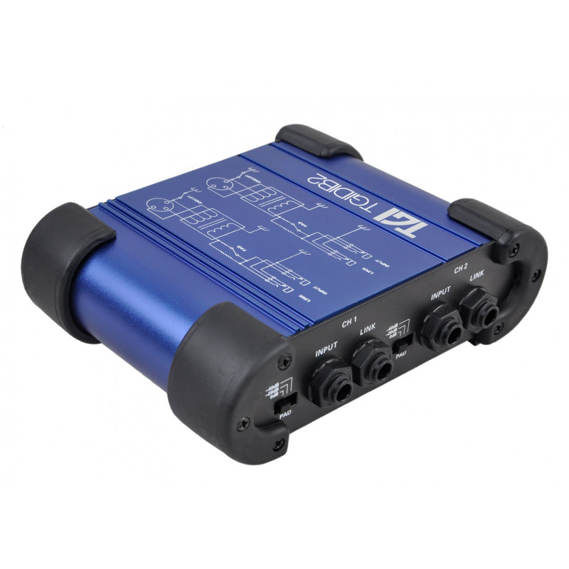 DI box pasivní, dvoukanálový v robustním provedení v modré barvě s konektory Jack 6,3 a XLR, nechybí přepínač Ground / Lift nebo Pad útlum 0 dB, -20 dB nebo -40 dB. Výhodou je jistě i Link průchozí výstup pro aparáty a podobné aplikace. Rozměry 100 x 155 x 50 mm.